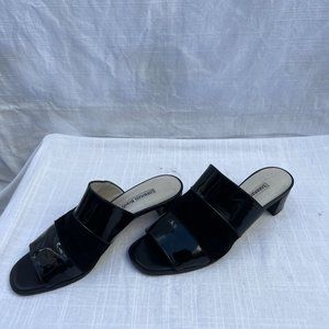 Lorenzo Banfi Black Slip On Open Toe Patent Leather Cuban Heel Shoes Size 37.5