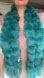 Luxurious teal faux fur scarf. Soft and stylish for any occasion. Features 3 rows of little fur balls and then feather shaped tassels at the end