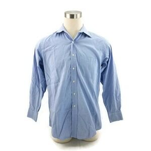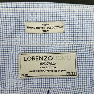 Lorenzo Uomo Mens Dress Shirt Blue/White Checkered L/S Button Up 15.5; 32/33
