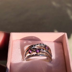 Authentic Lorenzo .925 Sterling Silver 10k White & Rose Gold Plated Genuine Amethyst & White Sapphire Ring. Sz 6.5