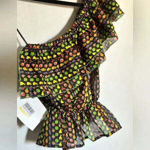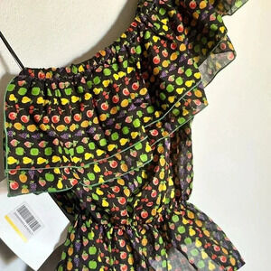 - printed fruits of all kinds on ruffled top