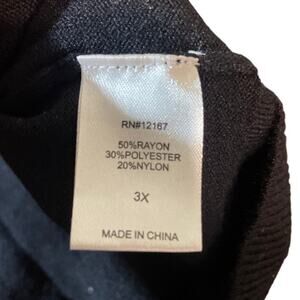 Lori Felt Women's Sweater - Size 3X - Black. This cozy and versatile long-sleeve sweater features a classic round neck and is crafted from a soft and durable rayon blend. Perfect for layering or wearing on its own, it combines comfort with effortless style, making it a great addition to any wardrobe. See images for measurements and details. Blouse not included.