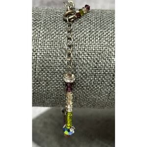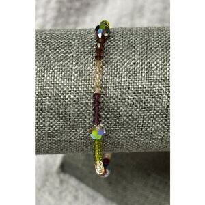 Lori Frantz Koenig Green Purple Faceted Austrian Crystal Bracelet #64192