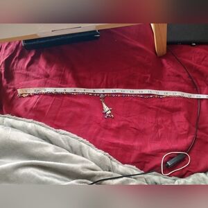 Necklace has amazing color beading all around with a long triangle pendant with an intricate design and with additional beading!