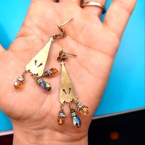 These post triangle drop earrings are so Lovely and regal looking. Especially the color and sparkle of the beads hanging from them!