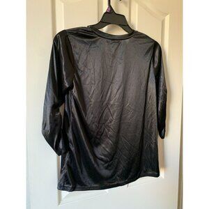 Lori Goldstein Black 3/4 Sleeve Womens Top xs Shiny Finish Scoop Neck Polyester