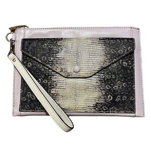 Lori Goldstein Clutch Envelope Purple Lilac Snakeskin Pattern Genuine Leather