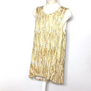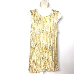 Lori Goldstein LOGO Layers Abstract Printed Knit Tank Top M Blouse Shirt Yellow
