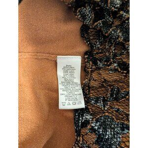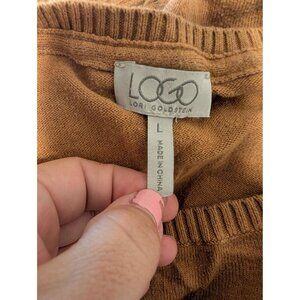 Lori Goldstein LOGO Womens Knit Top With Lace Hem Size Large Camel Brown