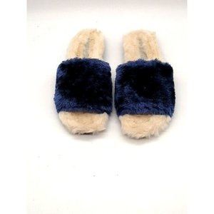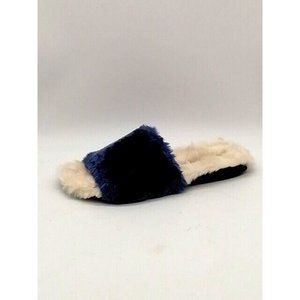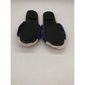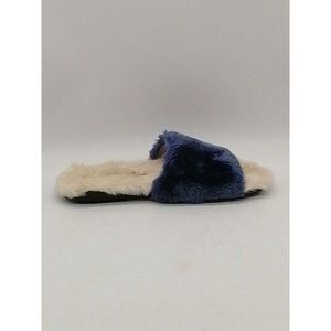 Lori Goldstein Womens Slippers Dillian Blue Chinchilla Faux Fur Slide 7.5 NEW