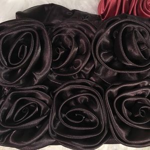 A rose by any other color. Like a beautiful handheld bouquet, this 3-piece floral set blooms w/ satin rosettes on the exterior. To switch up your look, simply snap one of the interchangeable slip covers into place for a pop of color. You are getting two different bags in one! From Lori Greiner!