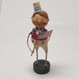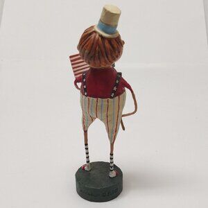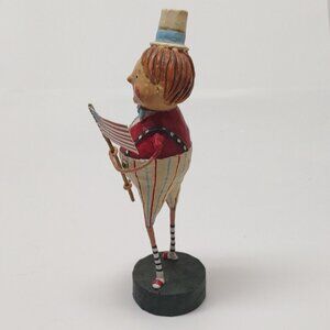Lori Mitchell Patriotic Franklin Freedom will be a wonderful addition to your collection. There are lot of little details in this Franklin Freedom....he has a top hat and is holding a little flag in his hand and he is dressed in striped shorts with blue suspenders with white stars on them. He has a light blue bow tie and it matches the light blue band on his hat. He has blue striped stockings and did you also notice his little red and white shoes?