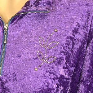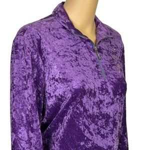 Lori of California AM Casuals M Purple Velour Long Sleeve 1/4 Zip Blouse Shirt