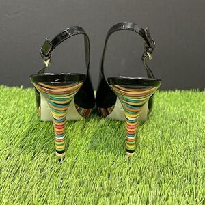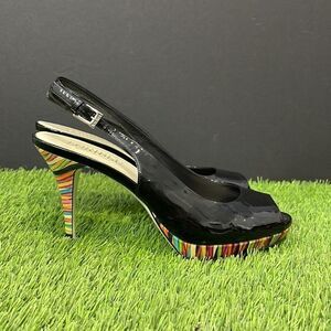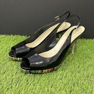 Loriblu Black Patent Leather Peep Toe Slingback Sandals