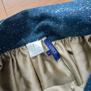 In excellent condition. No holes or stains. Size 2 but easily can be worn to an 8 as the waist is a wrap. Navy blue with speckles in the material. Perfect for church, office, wedding guest attire. Modest, corporate.