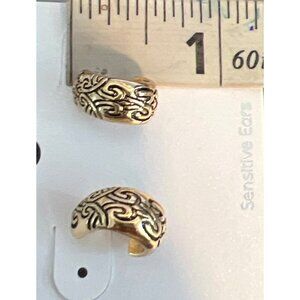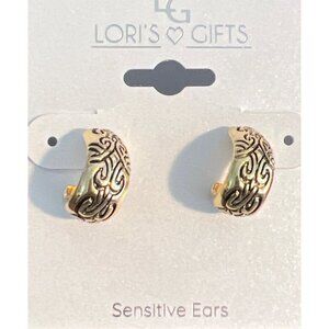 Loris Gifts Gold Tone Hoop Earrings Etched Design Pierced .5" New on Card