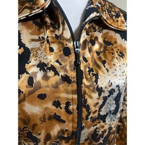 Features a brocade fabric with shimmer, full front zipper, fold down collar, tapered fit. Laying flat measures 19" from pit to pit, 17.5" in the waist, 21" from shoulder to the hem, and 22.5" sleeves. Be sure to check out all of the other Lorizoni jackets that I'll be listing. I have about 15 of them!!