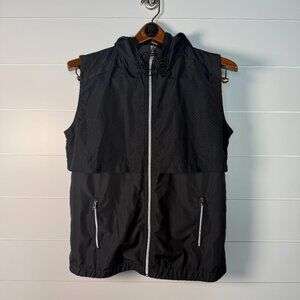 Lorna Jane Active Zip Up Hooded Sleeveless Windbreaker Jacket Black- Size Large