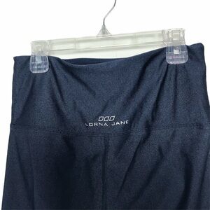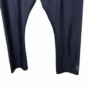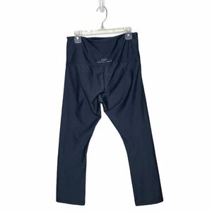 Blue cropped leggings with logo on back. Have a continuous drawstring inside waistband.