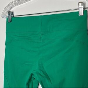 Lorna Jane Bright Green Crop Capri Legging. Continuous drawstring tie inside flat elastic waistband. Small zipper pocket, nice thick crop legging. Please see last photo of mild pilling on inner thigh inseam. Please note, size/fabric tag has been removed by me, I believe these are a size medium, see measurements for fit.