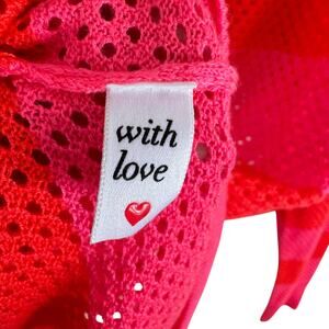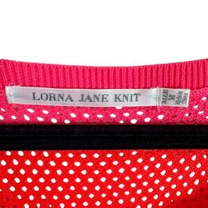Lorna Jane Knit Red Pink Striped Long Sleeve Round Neck Open Knit Sweater Size M