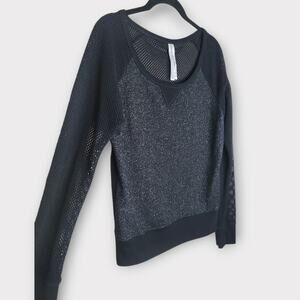 Lorna Jane Life Active Black Silver Sparkle Sweater Mesh Net Back