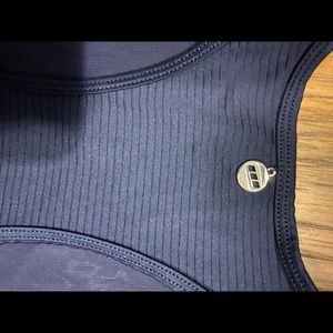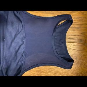 Mesh neckline and a Razorback silhouette. Beautiful royal blue color. Fabric is ribbed for a flattering texture.