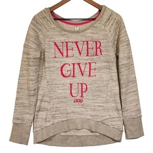 Lorna Jane Never Give Up Sweatshirt Grey Long Sleeve Hot Pink Velvet Letters Sm