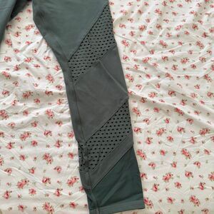 Thick supportive material with cutouts on the calf area. Used but I’m very good condition and no pilling.