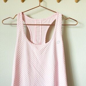 Light pink stretchy textured tank top in excellent condition with no visible flows. Lightweight breathable fabric. Size tag is missing, but fits like a size large.
