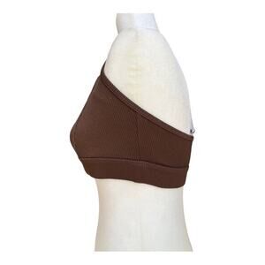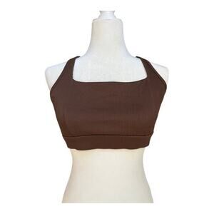 Item & Condition: This sports bra has luxe ribbed fabric that is so comfortable. Size/care tag has been removed. Removable cup inserts not included. EUC with no flaws.