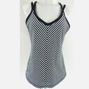 Item: Women's Black and White Striped Strappy Back St. Tropez Excel Tank Top