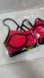 This stylish sports bra features a vibrant pink and black design with strappy details for a modern look. Perfect for workouts or casual wear.