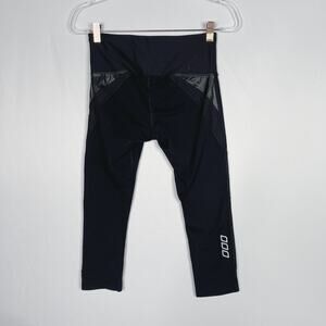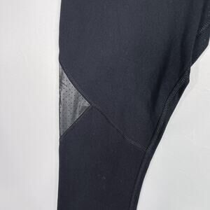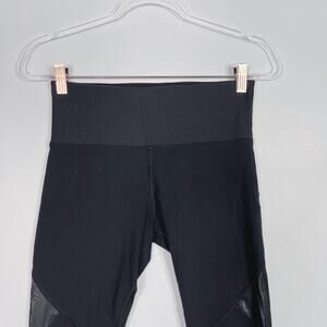 Lorna Jane XSmall XS Black Faux Leather Mesh Pieced Capri Leggings Workout