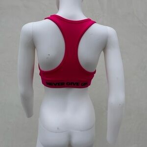 Tags: pre owned pink high impact small great condition pre owned “never give up” race back sport bra
