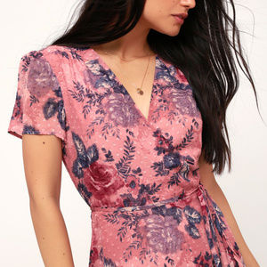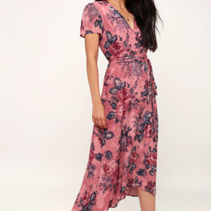 Lorna Mauve Pink Floral Print Midi Wrap Dr…