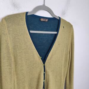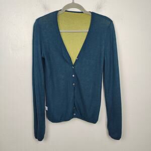 Loro Piana Cashmere Cardigan Womens 42 US 6 Green Blue Reversible FLAW HOLE