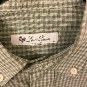 Loro Piana Collared Button Down Checkered Long Sleeve Green Size Medium