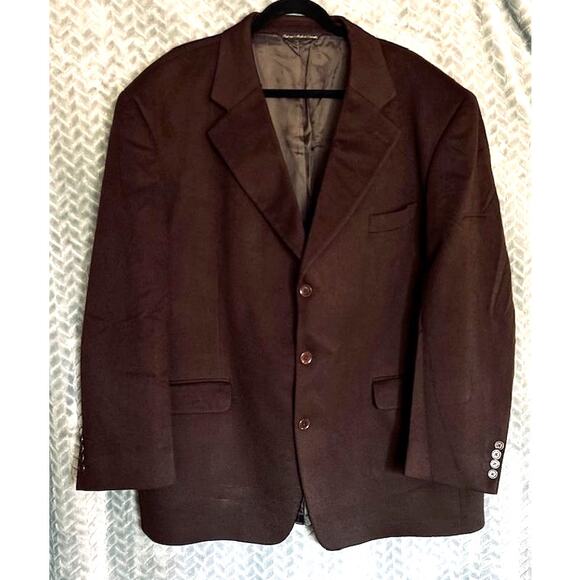 Quality never goes out of style. Amazing cocoa brown mens cashmere Jacket, 3 button, size 50R. Quietly elegant and totally masculine. Soft and luxurious. This is a medium weight jacket.