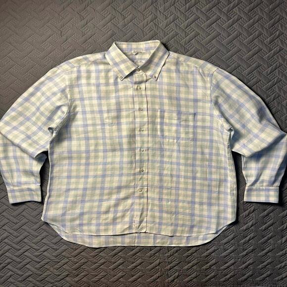 Loro Piana Luxury Linen Shirt Pastel Gingham Plaid Heritage Bespoke Men's XL