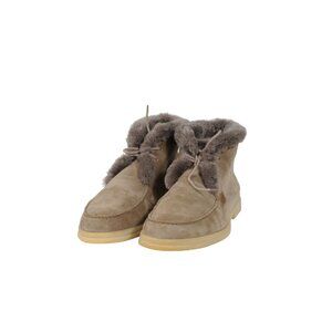 Loro Piana Mens Open Walks US11.5 EU44.5 Tan Suede Beaver Fur Chukkas Ankle Boot