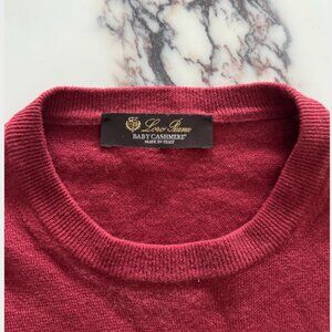 Loro Piana Men's Superlight Long Sleeve Crewneck 100% Baby Cashmere in Tibetan Red. Size IT 48. Crewneck in downy baby cashmere yarn, garment dyed and crafted using exclusive techniques to accentuate the natural feather-light softness of the fibre. Hip length, styled with a classic cut, ideal for refined leisure time outfits 100% Baby Cashmere. Good condition. *Small hole on left sleeve, shown on page 4 circled in white. *Small hole on upper left chest, shown on page 5 circled in black. *Three small holes on bottom left of the shirt, shown on page 6 and boxed in white. *These holes are easy repairs, and can be done at your local reweaving establishment. Rare, supersoft baby cashmere is obtained solely from the underfleece of Hircus goat kidsRib-knit collar, hem and cuffs. Composition: 100% cashmere Made in Italy Product code: FAF6086