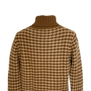 This Loro Piana men's Turtleneck Sweater makes a statement due to it's long sleeve, pullover fit, chunky knit, turtleneck, ribbed trim and tan (brownish)/cream design.