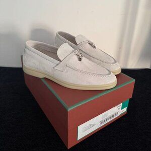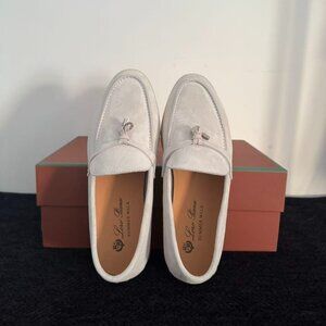 Loro Piana Weekend Walk Wind Suede Gray Loafers 38