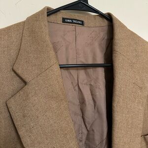 Exceptionally tailored two-button blazer crafted by Kawa Tailors (Hong Kong), made with luxurious Loro Piana wool fabric (Lanificio Ing. Loro Piana & C., Italy). Features a brown herringbone weave, full silk lining, dual vents, and soft natural shoulders. Size 46R. Classic vintage GANT single-breasted blazer in a rich glen plaid of browns and grays. Size 38L. Tailored for Leonard’s Men & Boys in Northbrook, IL. Beautifully made, two-button front with flap pockets, fully lined interior. Perfect for Ivy League, prepwear, and heritage-inspired looks. Old money meets timeless tailoring. Please refer to the styled photo as inspiration and not for details on the exact item. Measurements Chest: 38” Shoulders: 16” Sleeve (shoulder to cuff): 24” Back length: 30.5” Keywords: GANT, vintage blazer, glen plaid, sport coat, Ivy League style, preppy menswear, tailored wool, brown gray check, 1980s mens fashion, old money, classiccore, Ralph Lauren style, heritage tailoring, made in USA tailoring Minor repair visible above back vent (pictured). Timeless design suited for classic, heritage, or tailored looks. Measurements: • Shoulder: 20” • Chest: 46” • Length: 31.5” Loro piana blazer, italian wool, tailored menswear, heritage style, corpcore, prepwear, classic menswear, handmade blazer, made to measure, ivy style, hong kong tailor, bespoke Preppy, classic, academia, heritage, classiccore, blokecore, Ralph Lauren, tailored, oldmoney, preppy, Corpcore