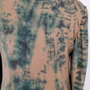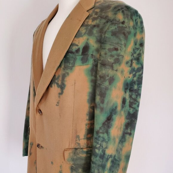 This one of a kind Loro Piana- Hart Schaffner Marx blazer sweater jacket is a soft, luxurious and versatile piece perfect for various occasions both casual and formal. Your go to piece for colder weather...you will want to wear this one all the time! It has the feel of a sweater, but a more polished look perfect for workwear, your travels, parties, or formal events. Made from a high-quality cashmere, this blue green, tan and gray black camouflage inspired blazer features a classic design and crisp tailored style. With a flattering cut and fit combined with Loro Pianas quality Italian milled fabric, this limited edition blazer is both stylish and functional. This is a hand painted creation and the only one like it in the world designed to be worn casually with jeans, or jazzed up for more dressy affairs while still being comfortable. It's the best of both worlds. Ideal for adding a little flair to any outfit with no effort, this blazer is a timeless wardrobe essential for the modern man.