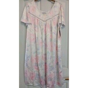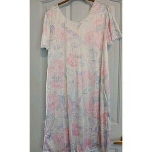 Lorraine Pink Floral 100% Nylon Midi Length Embellished Neck Nightgown Med NWT