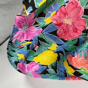 Vintage Lorraine all over bright colorful tropical floral, short sleeve, vneckline, boho night gown, sleep shirt. Women's size large.