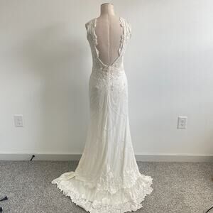 Lorre Bethke Wedding Dress Women M White High Neck Beaded Beach Side Slit