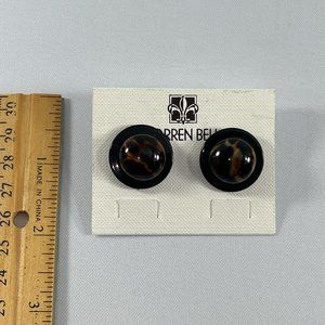 Lorren Bell Button Earrings Black Faux Tigers Eye Round New on Card
